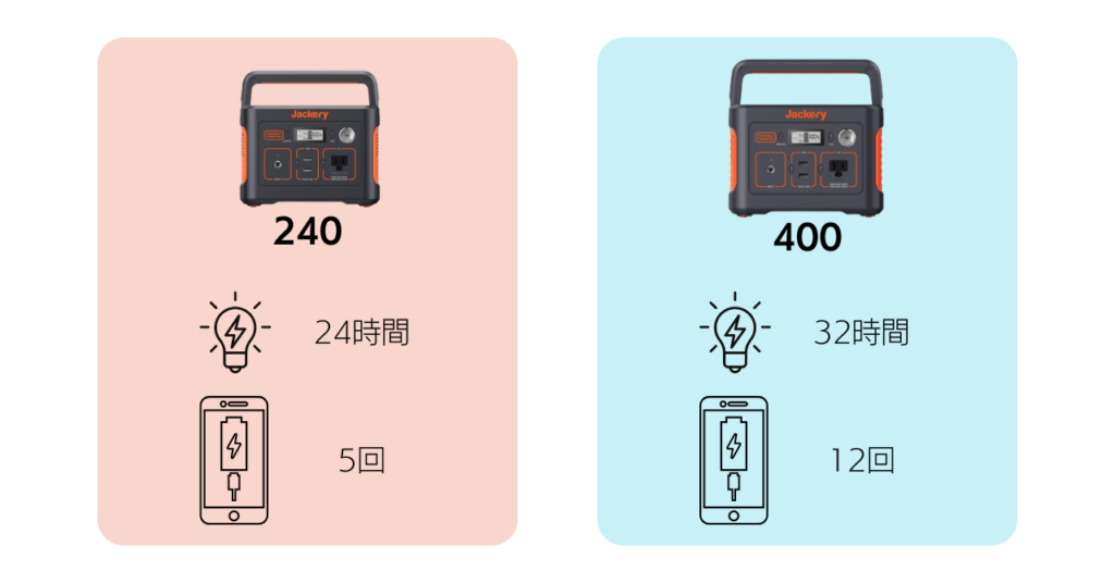 前提として従来モデルのJackery240・400と最新モデルのJackery240Newとは、性能が大きく異なります。