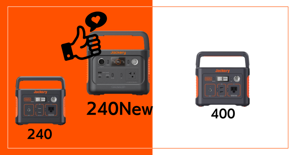 Jackeryポータブル電源240・240Newと400の違いを比較表にまとめました。